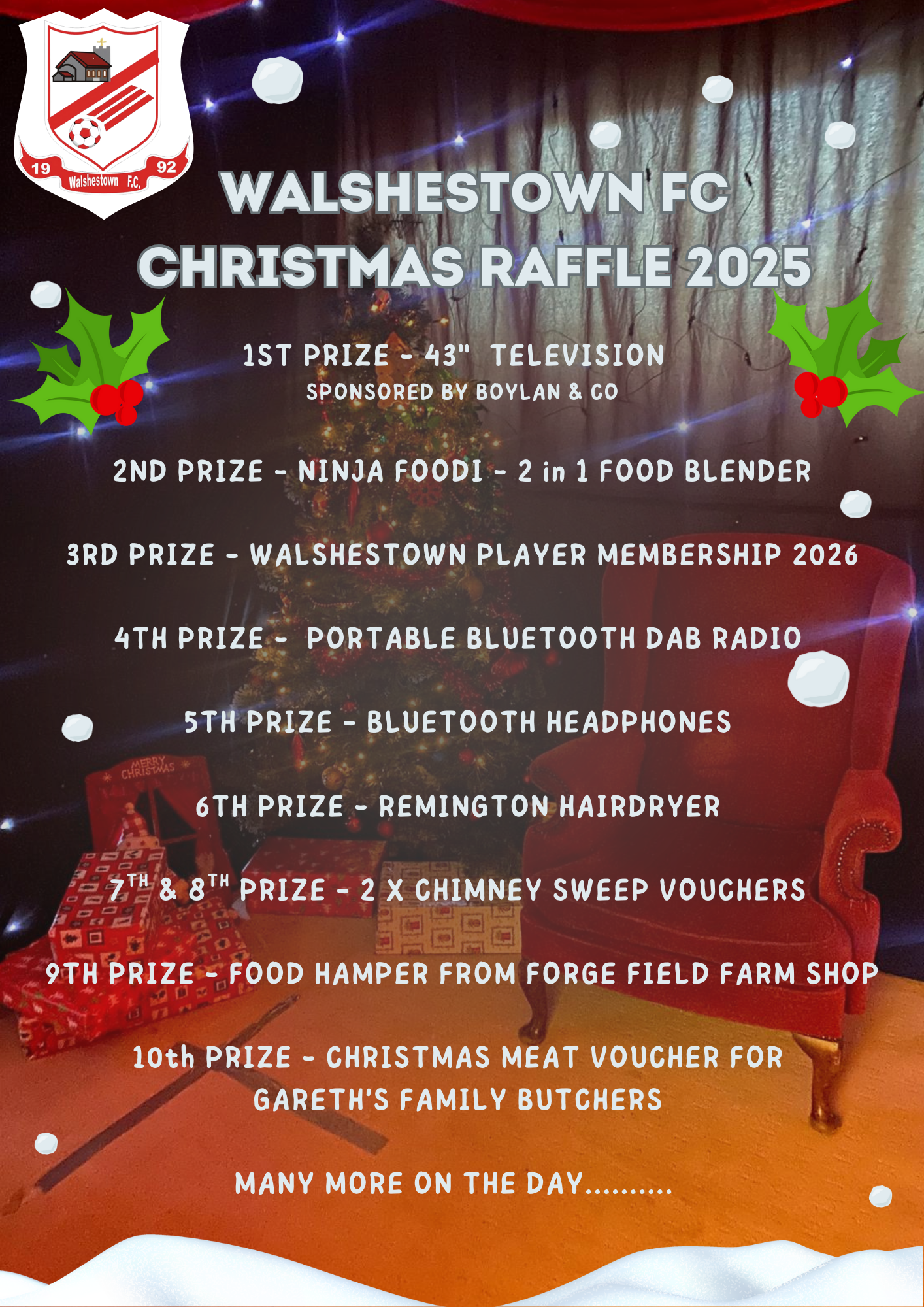 SelectDraw will take place at Walshestown FC's Christmas party